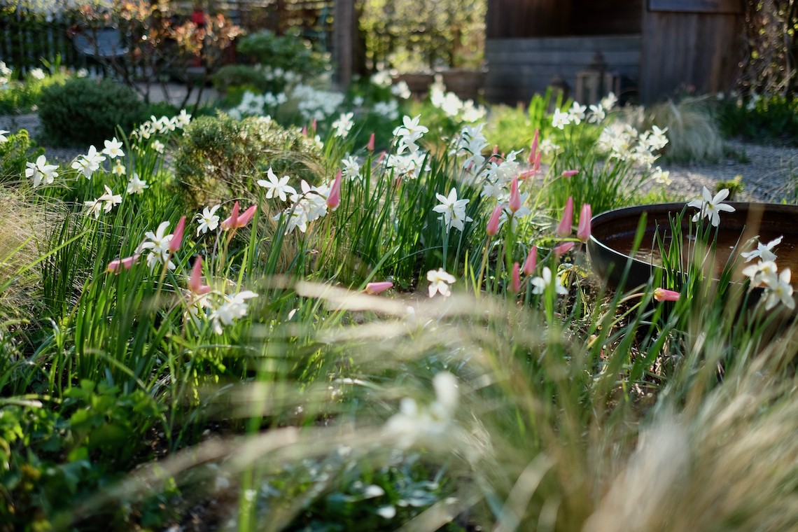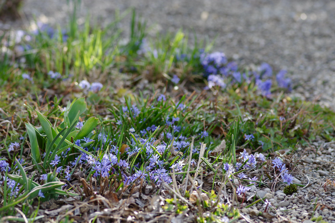 Nach etwas Überwindung habe ich es vor ein paar Jahren endlich geschafft, im Herbst grosse Mengen an Blumenzwiebeln zu setzen. Sie «verwildern» und bilden mittlerweile richtige Teppiche, zum Beispiel die violetten Blüten des Blausternchens.